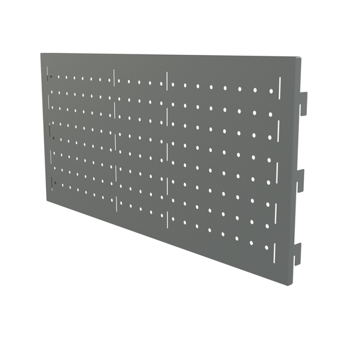 Перфорированная панель Титан GS предназначена для хранения различных предметов гардероба, приспособлений и инструмента. Неотъемлемый атрибут в гардеробной системе для ценителей порядка. Может быть укомплектована элементами для гаража и гардеробной комнаты для хранения мелочей. Панель выдерживает до 15 кг при ее равномерном распределении. Устанавливается на стойки Титан GS (в комплект не входят). Покрытие: порошково-полимерное, гипоаллергенное и устойчивое к механическому воздействию. Цвет: серебристый.