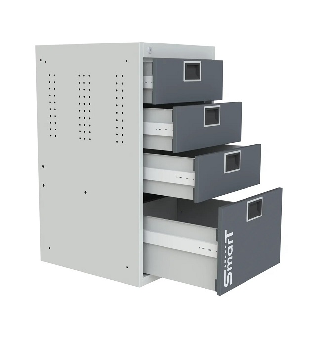 В комплектацию верстака входит: столешница 1280 SMART, тумба SMART 1-1, тумба SMART 4, тумба-пенал SMART. Столешница выполнена из фанеры 27 мм со стальной окрашенной накладкой 1,2 мм. Тумба SMART 1-1 комплектуется одной дверью, одним выдвижным ящиком и одной полкой. Внутренняя стенка двери имеет универсальную перфорацию для размещения навесных элементов. Тумба SMART 4 комплектуется 4 выдвижными ящиками. Выдвижные ящики оборудованы телескопической системой полного выдвижения ящиков с фиксацией в закрытом состоянии (50000 циклов). Тумба-пенал SMART выдвигается на четырех телескопических направляющих и предназначена для хранения крупногабаритных инструментов и аксессуаров. Все тумбы закрываются ключевым цилиндровым замком. Секретность замка 2000 комбинаций (2 ключа в комплекте). Шаг квадратной перфорации (10 мм) - 38х38 мм, круглой (7 мм) - 25х38 мм. Возможна смена стороны открывания двери тумбы. Цвет верстака: корпус тумб - серый Ral 7035, столешница, лицевая панель тумб - графит Ral 7016. Поставляется в разобранном виде.