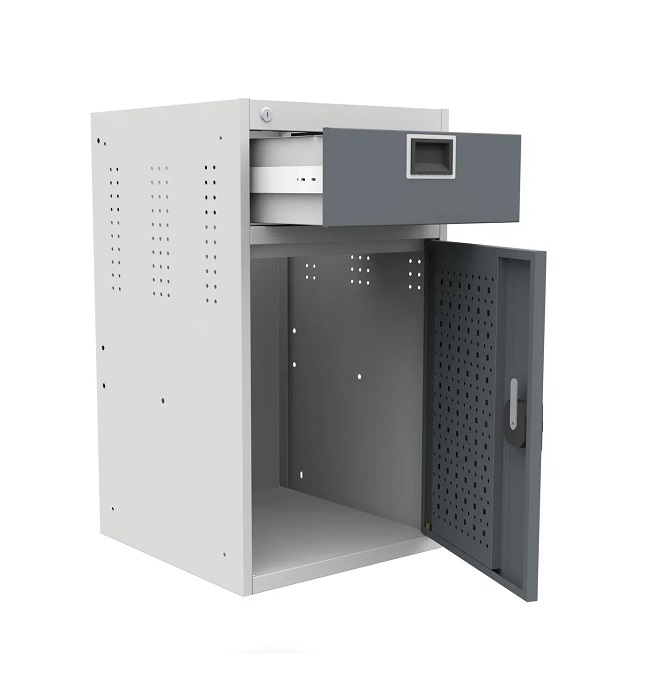 Выдерживает равномерно-распределенную нагрузку на верстак - 1000 кг, на тумбу - 300 кг, на полку - 60 кг, на выдвижной ящик -30 кг, на перфорированный экран - 50 кг.