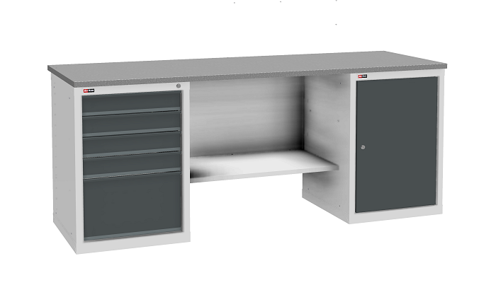 Цвет верстака: серый Ral 7038, лицевая панель ящиков/дверей антрацит Ral 7016. Тип покрытия: эпоксидная порошковая краска. Поставляется в разобранном виде