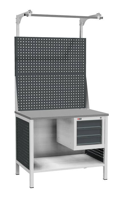 Панель облицовочная к опоре ВЛ-К устанавливается на опору верстака ВЛ-К. Представляет собой перфорированную декоративную панель. Имеет квадратную перфорацию 10х10 мм с шагом 35 мм. Окрашена в эпоксидной порошковой краской, цвет антрацит Ral 7016